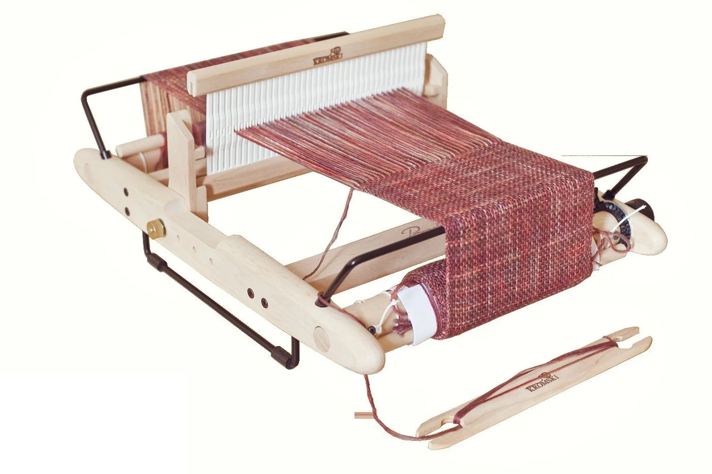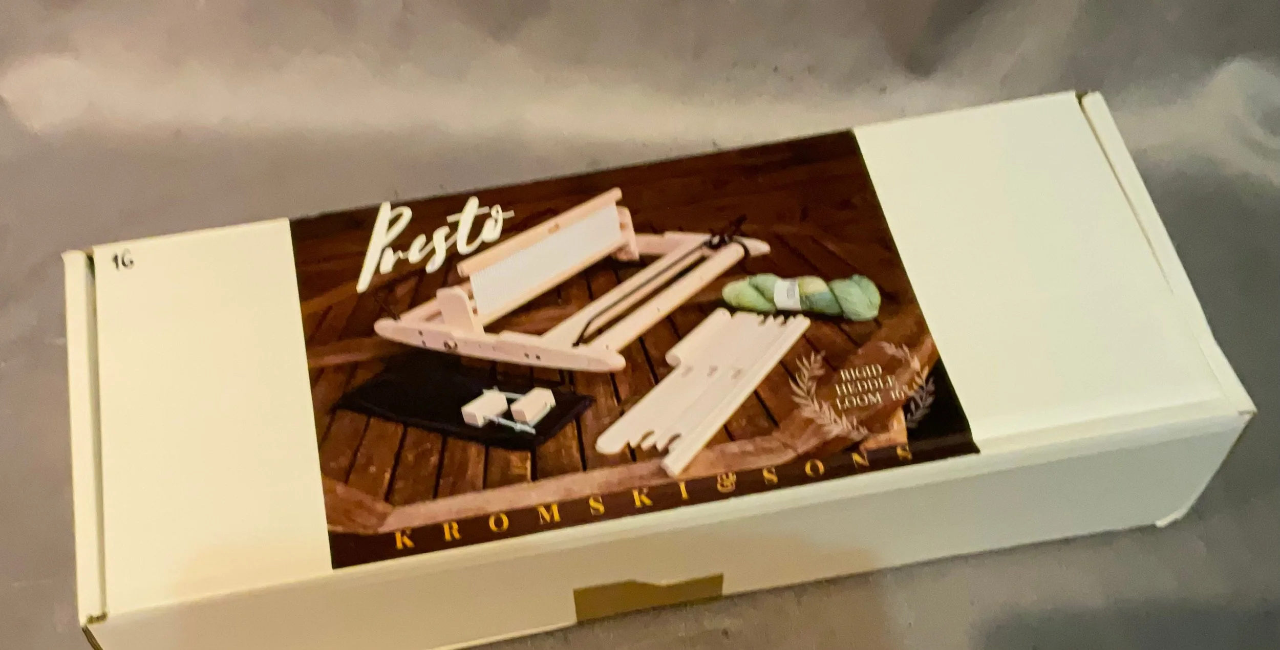 This new rigid heddle loom features a sleek modern look, paired with the same quality craftsmanship you’ve come to expect from Kromski. The Presto is available in warping widths of 10 and 16 inches and comes in unfinished Alder wood with an 8 dent heddle. This striking design offers a raised metal beam for a beautiful weaving area. Each of the metal braces on the underside of the loom are adorned with small rubber ‘stoppers’ that not only protect the top of your work surface, but also help to prevent the loom from slipping as you weave. The Presto also includes a new Warp Helper Loop which provides perfect stability between the heddle and the dowel rod while warping the loom. This simple addition acts as an extra set of hands, making the warping process a breeze. The Presto features the same metal ratchet and pawl with corresponding rare earth magnets which provide incredibly secure tension locking abilities.